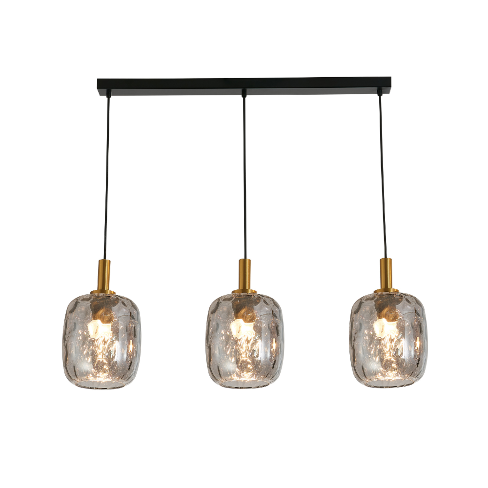 Pendel Balk 3xE27 Ø180mm Zwart + 3x as grijs glas – FANTASIA OKIRU 3