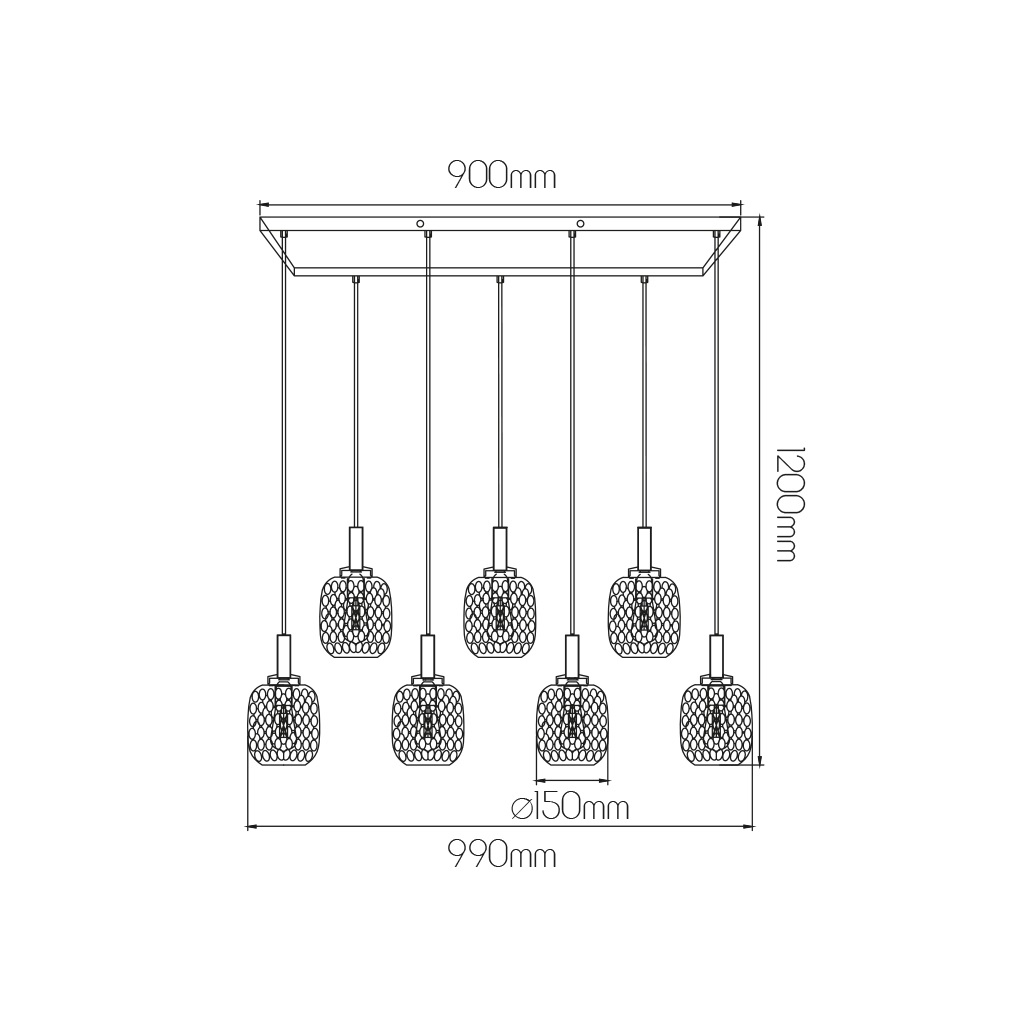 Pendel Balk 7xE27 Ø150mm Zwart + as grijs glas – FANTASIA OKIRU 7